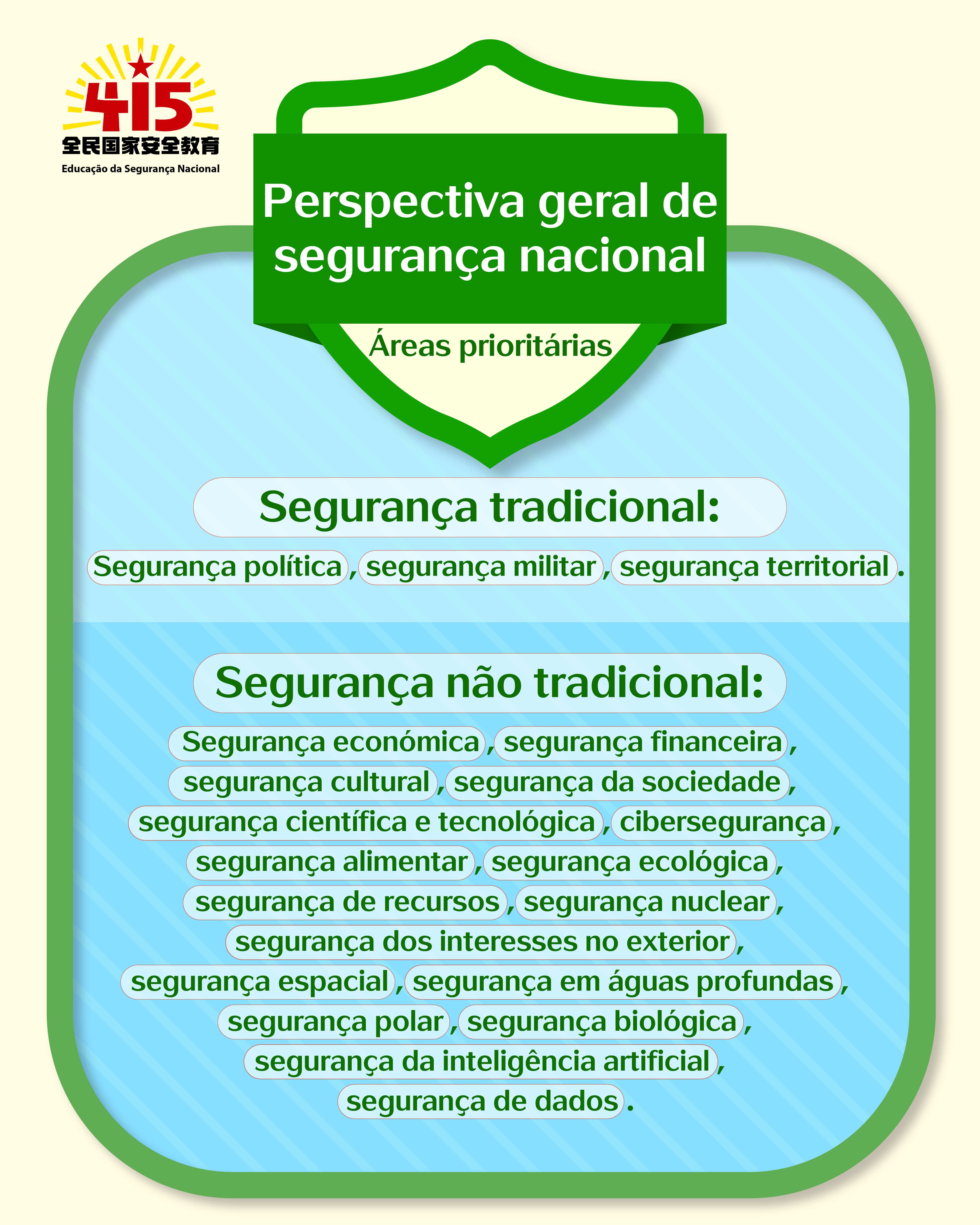 A segurança nacional é da responsabilidade de toda a população. O dia 15 de Abril não é apenas um dia que se reveste de um significado particular, mas como também um alerta permanente que nos faz relembrar frequentemente a necessidade de pensar na adversidade em tempos de paz, defender firmemente a segurança nacional e conhecer profundamente a importância extrema da segurança nacional.