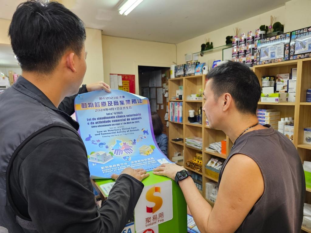 市政署持续开展《动物诊疗及商业业务法》普法工作,于日常巡查期间,加强向相关业界说明兽医专业资格认可要求,以及法律所规范的四类动物场所设立的准入及监管制度,以便业界在2024年4月1日法律生效前作好过渡安排。