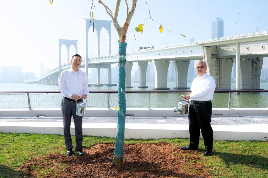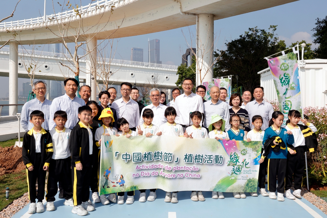 為響應3月12日中國植樹節,市政署於南岸海濱綠廊舉辦植樹活動,行政法務司司長黃少澤、司長辦公室主任曾翔、市政署市政管理委員會主席周偉迎、市政諮詢委員會主席許樂敏等嘉賓聯同近60名師生,一起種植苗木以美化澳門海岸,共同倡導“愛綠、植綠、護綠”的理念。